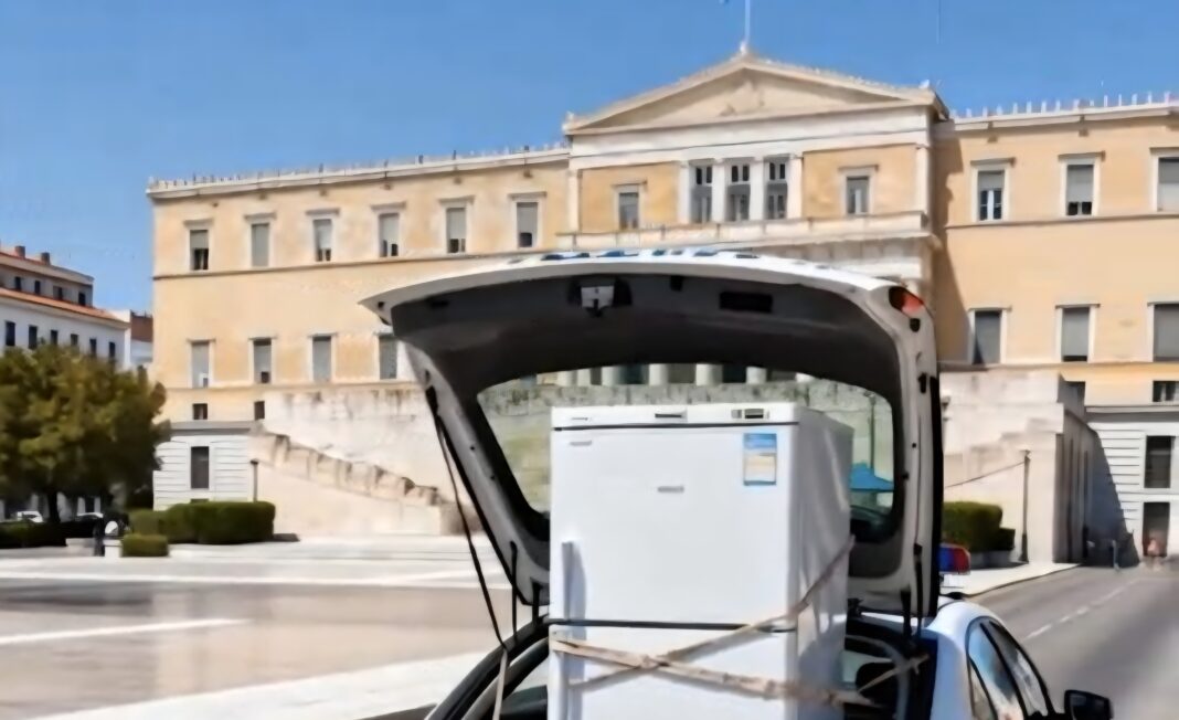 Σε ένα παράλληλο σύμπαν ο Μιχάλης Χρυσοχοΐδης ΑΙ με τη βοήθεια της τεχνητής νοημοσύνης και πολύ χιούμορ μεταφέρει ένα ψυγείο με περιπολικό στο κέντρο της Αθήνας.