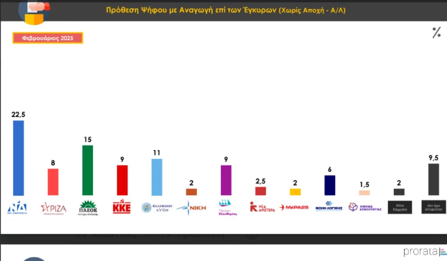 Η υπόθεση των Τεμπών λειτουργεί επιδραστικά στην πρόθεση ψήφου. Παρατηρείται ότι τα τρία μεγάλα κόμματα, ΝΔ, ΠΑΣΟΚ και ΣΥΡΙΖΑ καταγράφουν απώλειες άνω θεματικά κομματικά διαμαρτυρίας αυξάνουν τη δύναμη τους όπως η “Πλεύση Ελευθερίας” και η “Ελληνική Λύση”. Το κυβερνών κόμμα βρίσκεται πλέον σε ελεύθερη πτώση και δύσκολα θα μπορέσει να ανακάμψει όντας πλέον στο 22,5%.