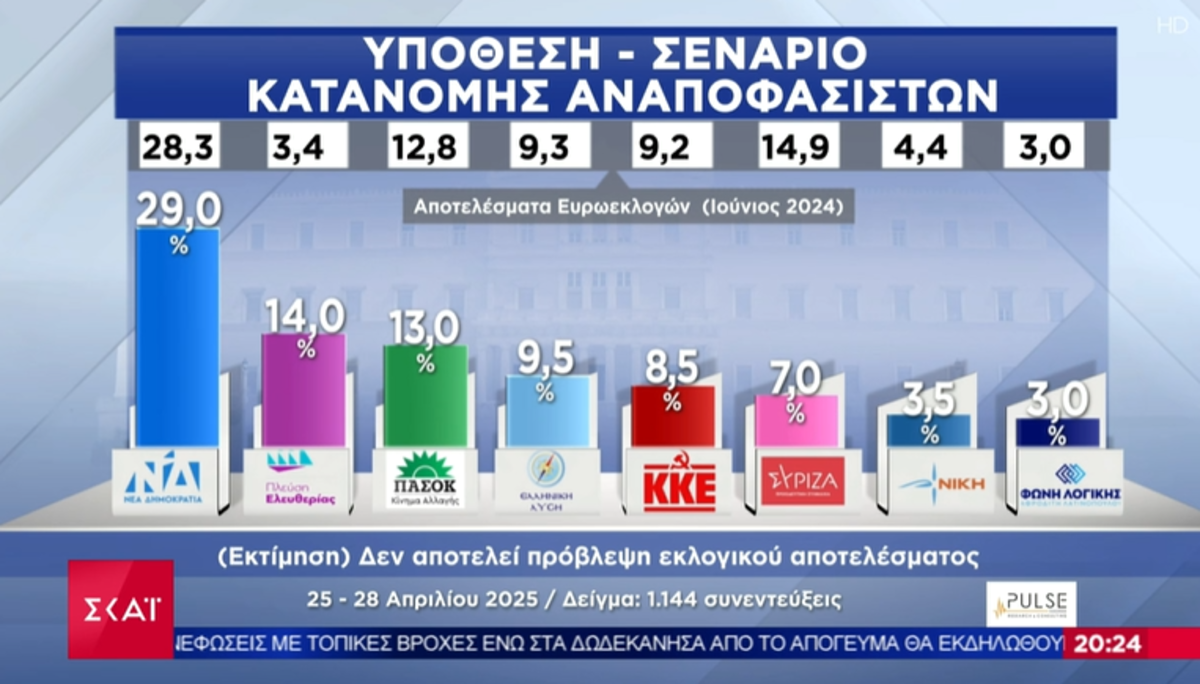 Δημοσκόπηση Pulse: Το 53% θέλει πρόωρες εκλογές – Πτώση για ΝΔ και Πλεύση – Νέες απώλειες το ΠΑΣΟΚ
