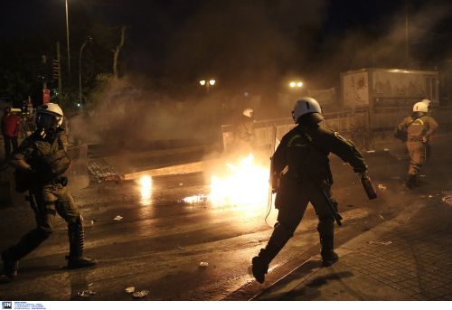 Σύμφωνα με την ΕΛΑΣ μια ομάδα ατόμων στην οδό Μητροπόλεως, στην πλατεία Συντάγματος έριξε μολότοφ και έβαλε φωτιά σε τρεις κάδους απορριμάτων.