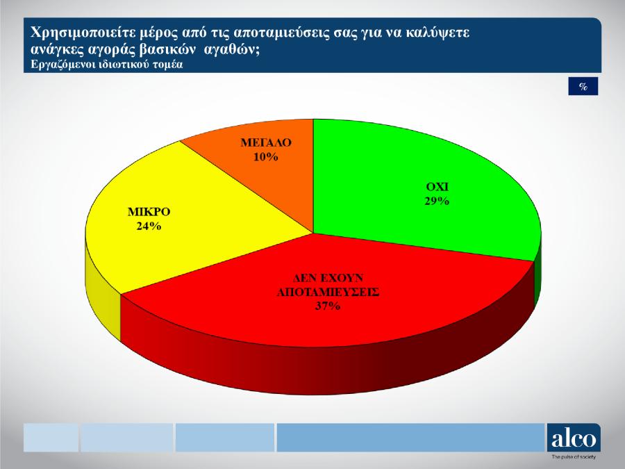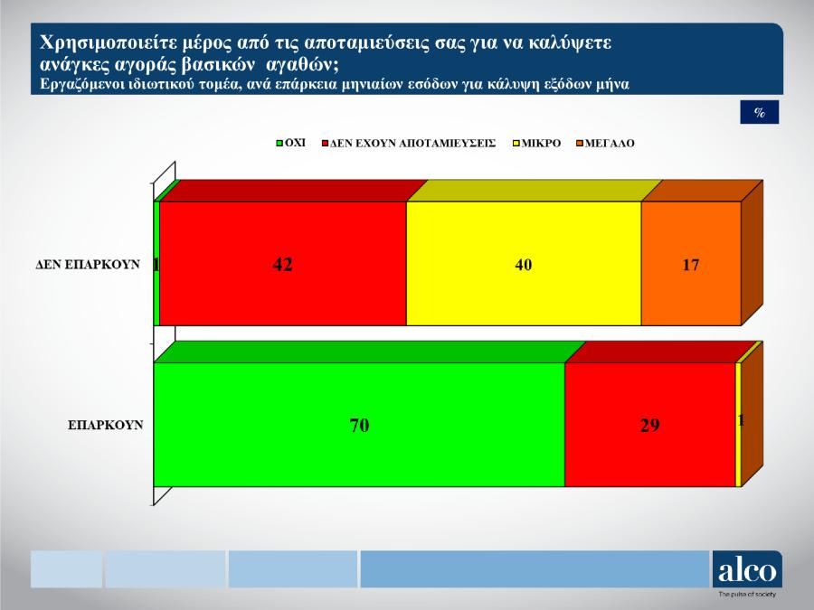 Ειδικότερα τα στοιχεία της έρευνας έδειξαν ότι, 7 στους 10 εργαζομένους (71% των ερωτηθέντων) δηλώνει ότι είτε χρησιμοποιεί μέρος των αποταμιεύσεων του.