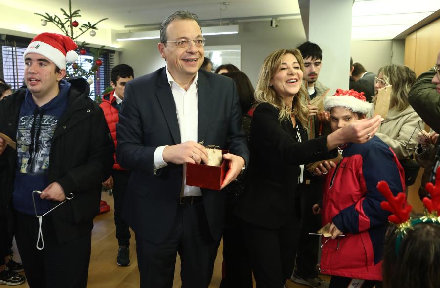Αμέσως μετά, ο πρόεδρος του ΣΥΡΙΖΑ-ΠΣ και η σύζυγός τους μοίρασαν δώρα στα παιδιά.
