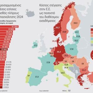 Στην ενημέρωσή του ο εκπρόσωπος Τύπου του ΣΥΡΙΖΑ επισυνάπτει και δύο σχετικούς επίσημους πίνακες της Eurostat, που απεικονίζουν με γραφήματα τις Μονάδες Αγοραστικής Δύναμης σε ευρώ μαζί με το κόστος στέγασης στην ΕΕ ως ποσοστό του διαθέσιμου εισοδήματος και τον δείκτη του κατά κεφαλήν ΑΕΠ στην ΕΕ για το 2024.