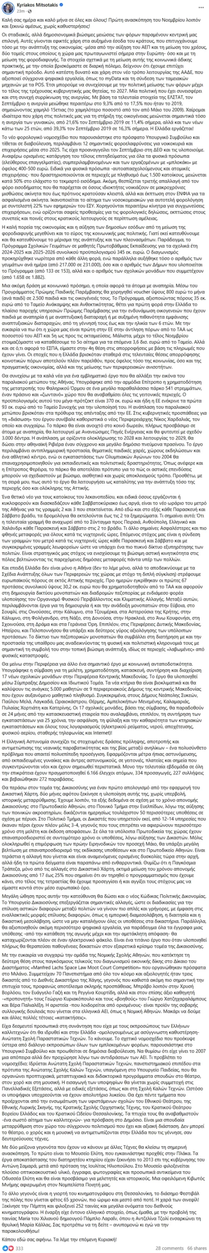 Ολόκληρη η ανάρτηση του Κυριάκου Μητσοτάκη