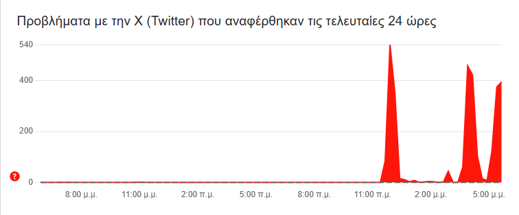 Ενδεικτική είναι η εικόνα της ιστοσελίδας downdetector, η οποία καταγράφει τις αναφορές προβλημάτων στο X από το πρωί της Δευτέρας.