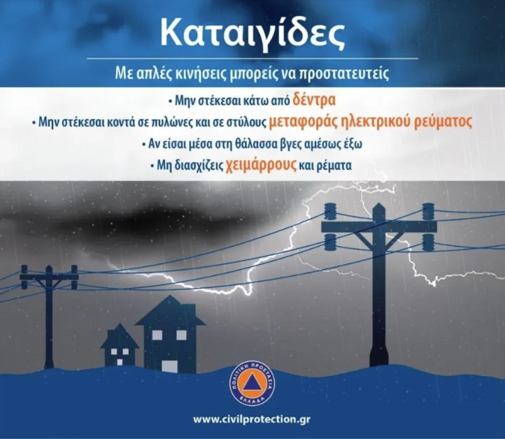 Παράλληλα, η γενική γραμματεία Πολιτικής Προστασίας συνιστά στους πολίτες να είναι ιδιαίτερα προσεκτικοί, μεριμνώντας για τη λήψη μέτρων αυτοπροστασίας από κινδύνους που προέρχονται από την εκδήλωση των έντονων καιρικών φαινομένων.