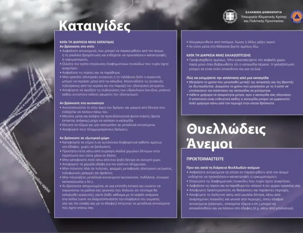 Οι οδηγίες της Γενικής Γραμματείας Πολιτικής Προστασίας
