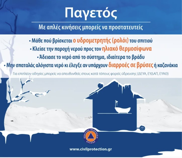 - Βεβαιωθείτε ότι οι εξωτερικοί σωλήνες (π.χ. ηλιακού θερμοσίφωνα, βρύσες μπαλκονιών) είναι μονωμένοι, διαφορετικά φροντίστε να μονωθούν το συντομότερο δυνατόν.