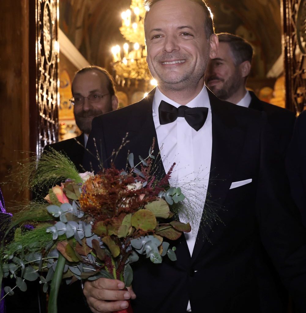 Ο δήμαρχος Αθηναίων έφτασε στην εκκλησία λίγο μετά τις 18:30. Δέχτηκε χαμογελαστός τις ευχές των καλεσμένων του στον προαύλιο χώρο, ενώ ακούγεται να λέει «είμαι πολύ χαρούμενος» για να προσθέσει «περιμένουμε τη νύφη».