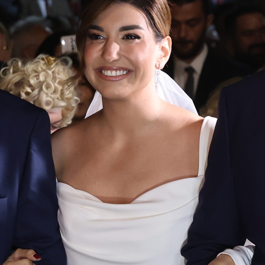 Η λαμπερή νύφη έφτασε στην εκκλησία λίγο μετά τις 19:10.