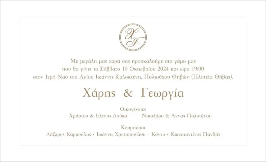 Θα ακολουθήσει δεξίωση σε κτήμα στις Αφίδνες, στον χώρο εκδηλώσεων Casa e Campo.