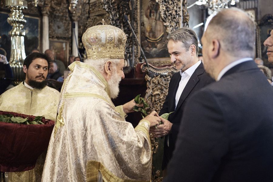 Στον Ιερό Ναό Ευαγγελιστρίας Τήνου παρακολούθησε ο πρωθυπουργός Κυριάκος Μητσοτάκης, την Πρώτη Ανάσταση,το πρωί του Μεγάλου Σαββάτου.