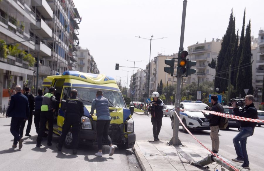 Τροχαίο ατύχημα συνέβη στη συμβολή των οδών Βασιλέως Γεωργίου Β’ και Βασιλέως Κωνσταντίνου, στο κέντρο της Αθήνας, όπου ενεπλάκη και ασθενοφόρο, και είχε ως αποτέλεσμα τον τραυματισμό πέντε ανθρώπων.