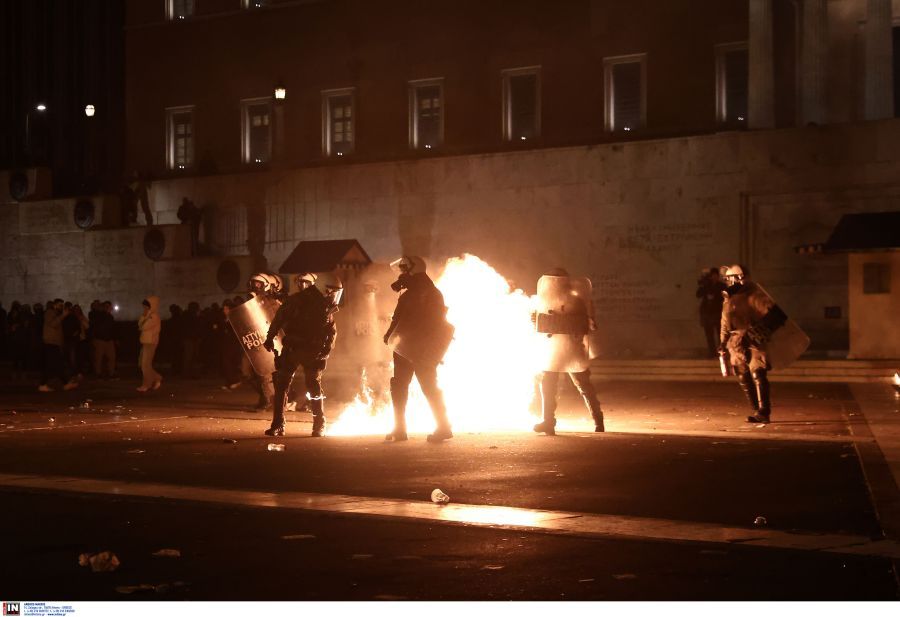 Επεισόδια ξέσπασαν στο Σύνταγμα και συγκεκριμένα έξω από τη Βουλή. Η αστυνομία έκανε χρήση βομβών κρότου λάμψης και ο κόσμος απομακρύνθηκε από το σημείο. Για ακόμη μια φορά ομάδα κουκουλοφόρων πέταξε μολότοφ, αλλά και βεγγαλικα προς την αστυνομία. Οι δυνάμεις των ΜΑΤ απάντησαν με κρότου λάμψης και απώθησαν τους διαδηλωτές.