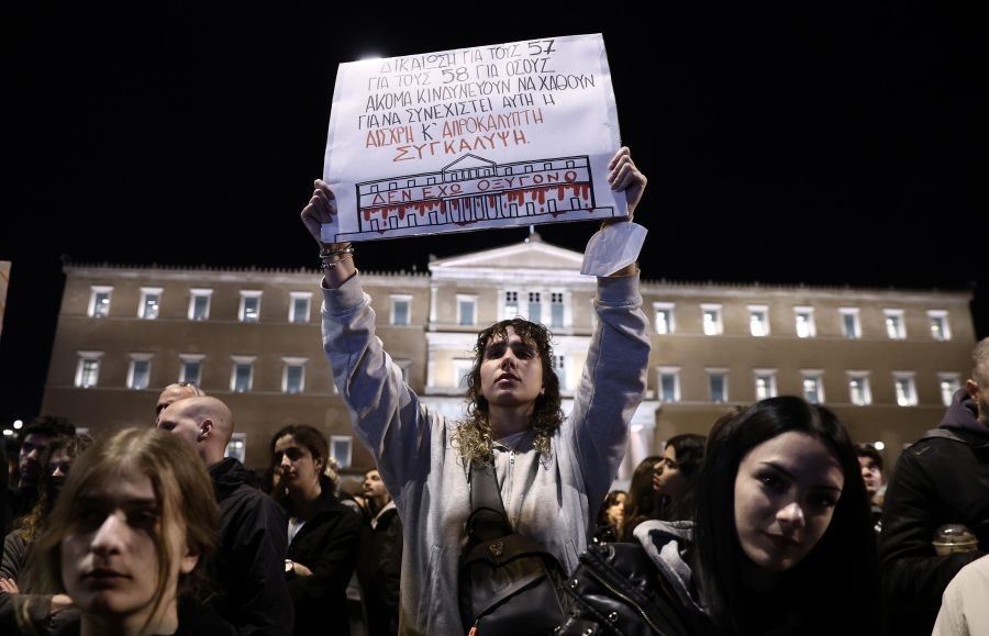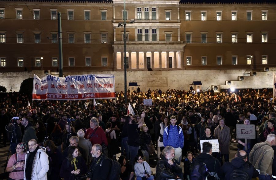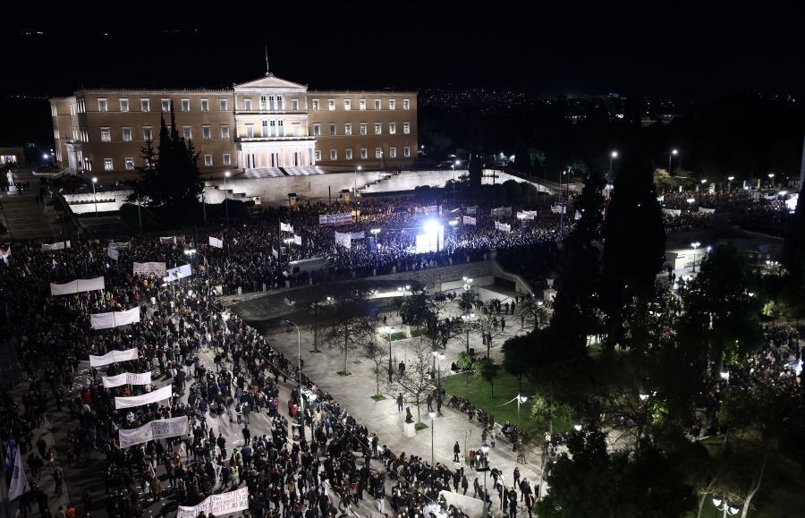 Εκ νέου μαζική ανταπόκριση των πολιτών στο κάλεσμα συνδικάτων, εργατικών κέντρων και ομοσπονδιών για συγκέντρωση στο Σύνταγμα για τα Τέμπη, με πλήθος κόσμου να δίνει το παρών έξωθεν της Βουλής, τη στιγμή που εντός του Κοινοβουλίου κλιμακώνοταν η συζήτηση για τη πρόταση δυσπιστίας.